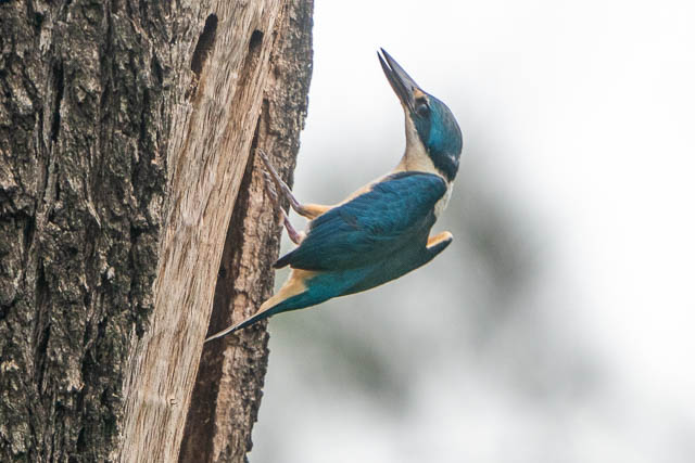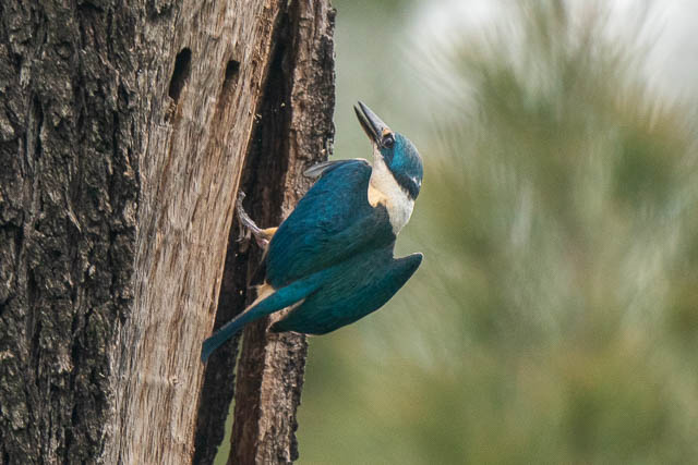 Back to the Sacred Kingfishers. They had moved to a different dead tree. It was the same one I had seen then drilling a nest hole last visit. That hole must have been no good, and a lot of other holes too. The dead tree was covered with dozens of small holes made by the Kingfishers.