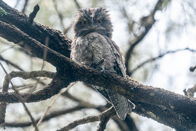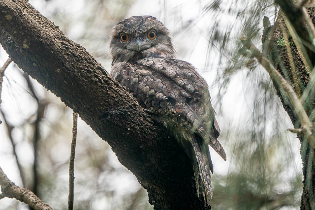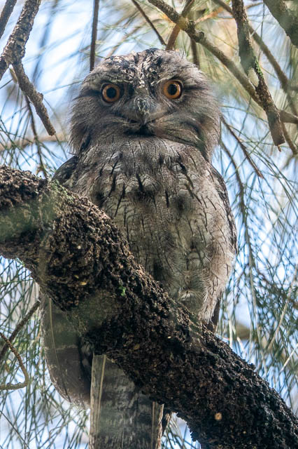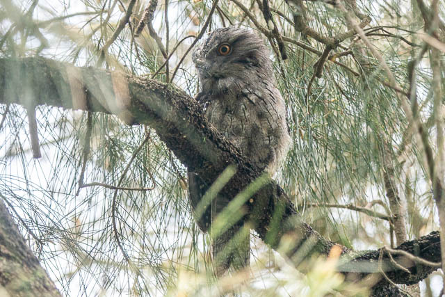 At the Boat Harbour, I soon located the five Tawny Frogmouths. One was in a tree by itself. This turned out to be the adult female.