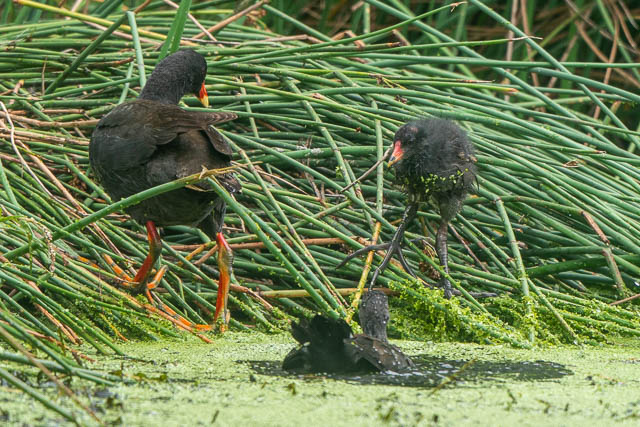 I then made my way to Cup and Saucer Creek Wetlands. There were plenty of chicks. Here is a Dusky Moorhen family –