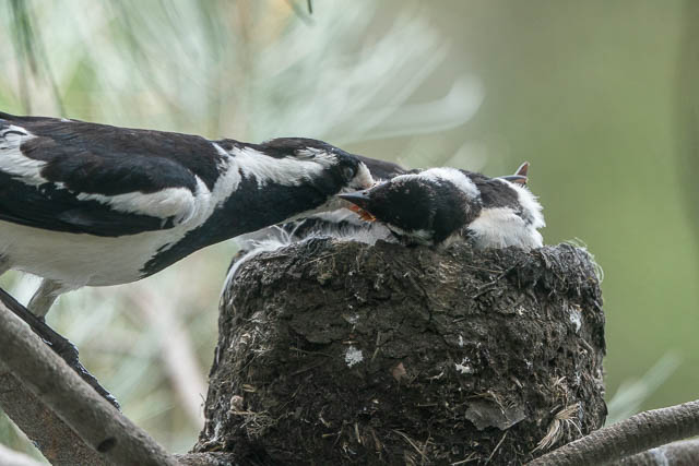 The first stop was to check a Magpie Lark nest. On previous visits I had seen an adult bird sitting on the nest. Now I could see two chicks.