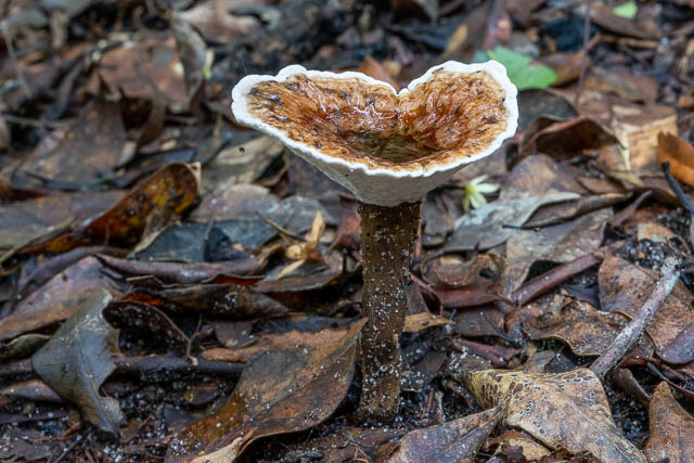 I had been keen to get to Sassafras Gully to check out the early season fungi for a while now – but had been reluctant to commit to a trip because of adverse weather forecasts. For this trip, the forecast was not the best – some showers were possible, but in the end it turned out quite a good day. I saw a lot of interesting things including some beautiful light blue Entolomas.
