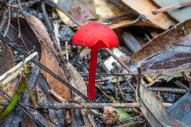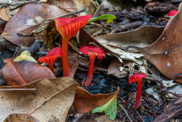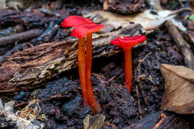 Further along the track, I found a nice cluster of Hygrocybe miniata in a place I often see them –