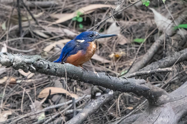 I think I saw four Azure Kingfishers – probably two parents and their two chicks. The chicks however only appeared very briefly and I was not able to get photos of them. But the adult birds were hunting a lot of time, perched looking for fish to prey on.