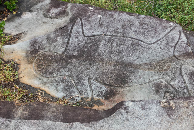 Close to this was a large rock covered with Aboriginal engravings. These have been “deepened” apparently.