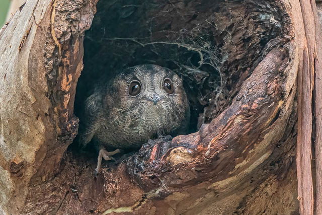 The success was due to five other bird photographers being present and all of us scanning possible hollows that the bird may be roosting in. As well, one of them, Cary, had photographed the Owlet-nightjar quite a few times previously and knew the likely places.