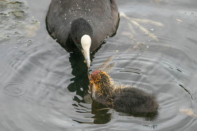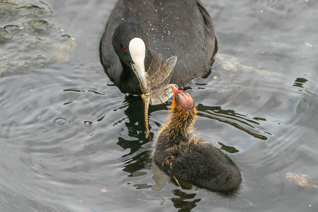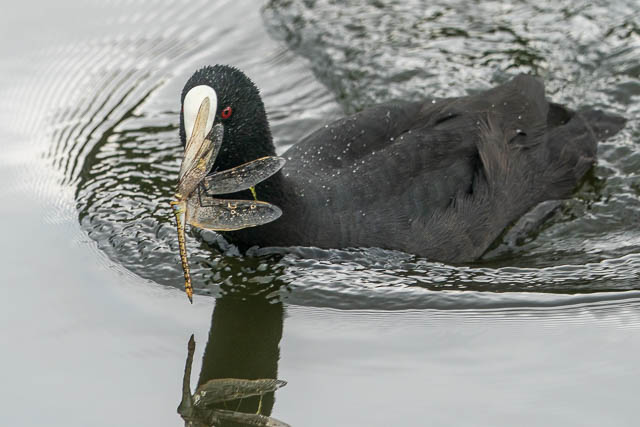 Another Eurasian Coot had just caught a Dragonfly.