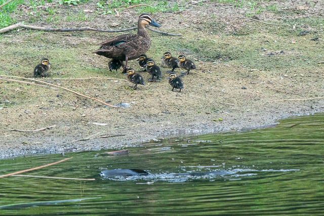 I then met up with Gokay, another bird photographer. We then headed to the lower pond where we saw a Pacific Black Duck with a large group of ducklings fleeing to the bank away from a rather large eel.