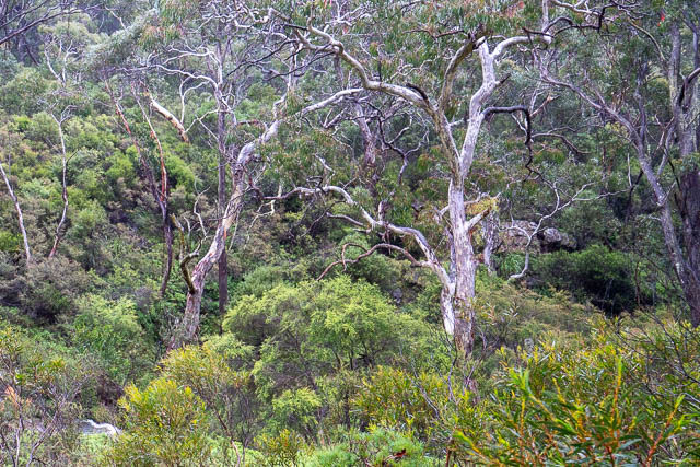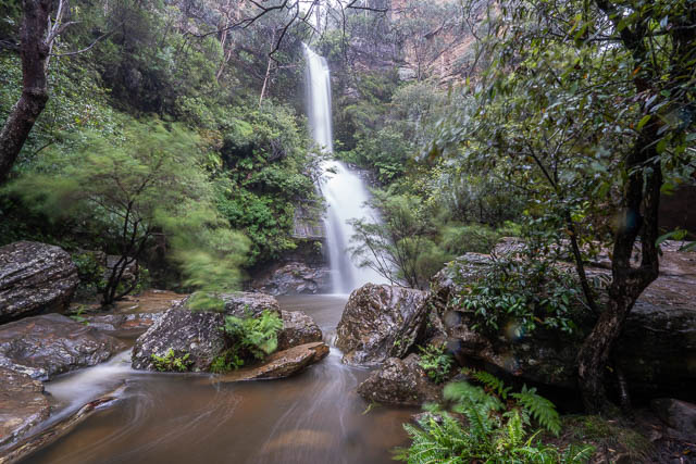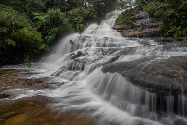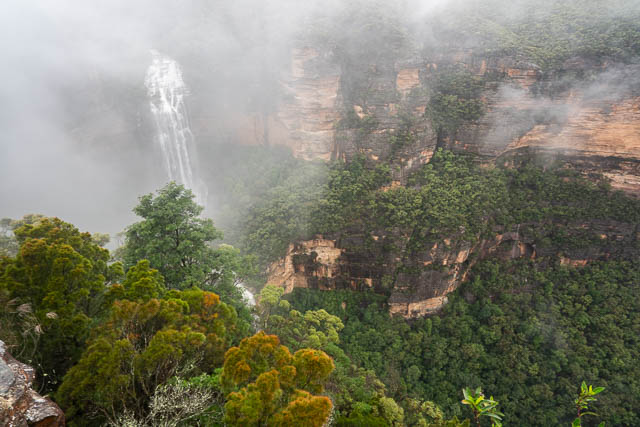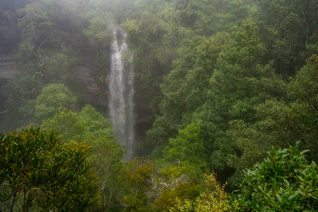 I was heading up the Blue Mountains with Bob. We had cancelled plans to visit a canyon due to a lot of recent rain and instead decided to visit some waterfalls. We first went to Minnehaha Falls north of Katoomba, then went to Reids Plateau on the other side of Katoomba and visited the nearby Katoomba Cascades and the Witches Leap. Then mist cleared to give us views of Katoomba Falls from Reids Plateau. Next was a visit to the cliffs of Leura, and a stop at Gordon Falls Lookout and the Pool of Siloam. Our last stop was at Wentworth Falls. We had rain on and off all day – but nothing really heavy.