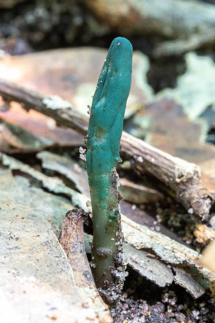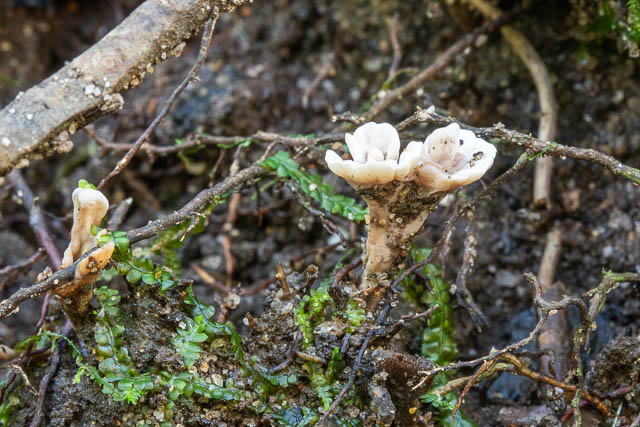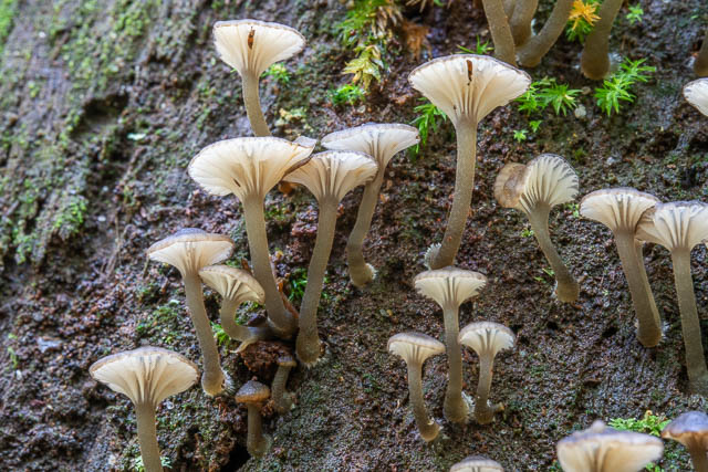 Thanks to Andre Jagger for the identification of this species. It grows in nooks at the base of trees such as Coachwoods. It is distinctive with the exuded red droplets.