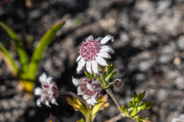 After our break, we set off along the tops. There was a lot of fresh growth to contend with – but most of it was easy to walk through. We even spotted some pink Flannel Flowers.