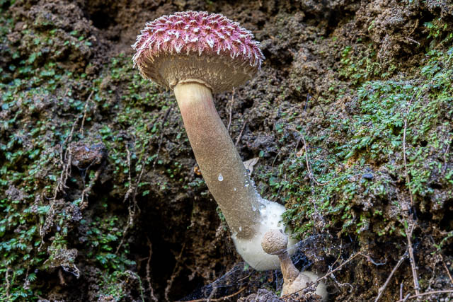 I photographed this same fungi on the previous trip. It is a spine fungus, and could be Hydnellum fraudulentum. But that species normally has a blue tint. This could be a variant or perhaps something else.
