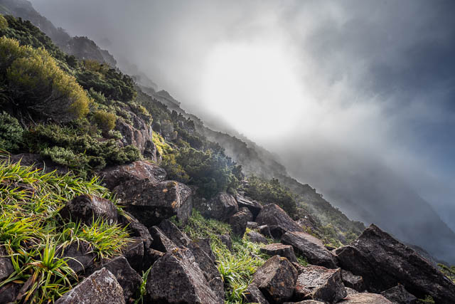 We set off up the track to the Acropolis. This climbs steeply through the rainforest and then through fagus to a flat plateau.