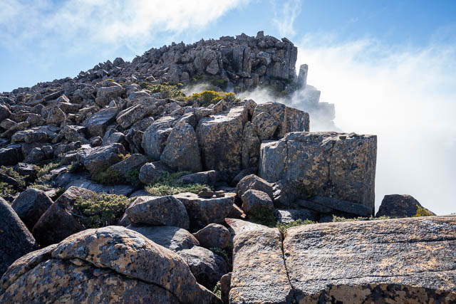 I climbed up through the mist to arrive on the summit plateau.