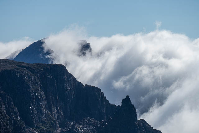 The actual summit of the Acropolis is the first of the pinnacles. It is a scramble to get on top, and I have been up many times before, so didn’t bother this visit. I spent my time watching the swirling mist and taking photos.