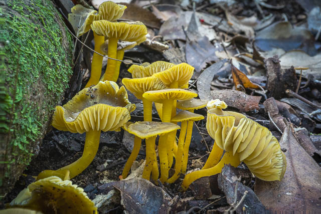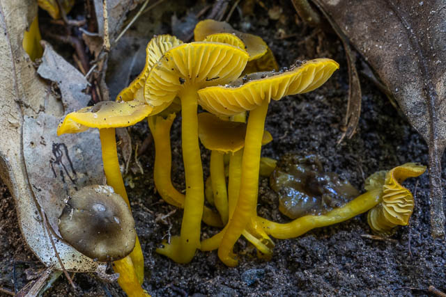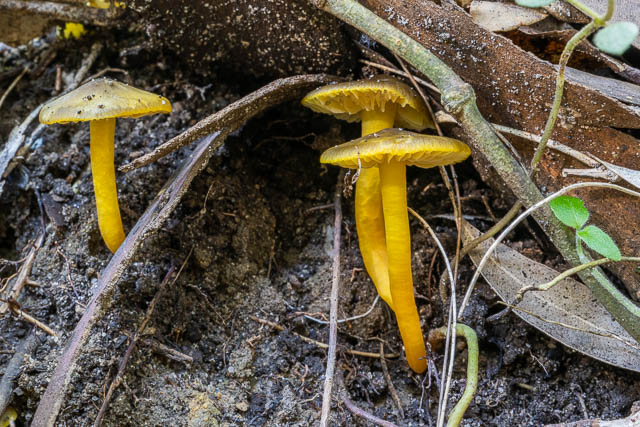 This was amazing display of fungal fruiting of what is a relatively rare waxcap. I have seen large clusters of Hygrocybe aurantipes before on two occasions at Wolli Creek, so it seems they can burst forth with large clusters like this if conditions are right.