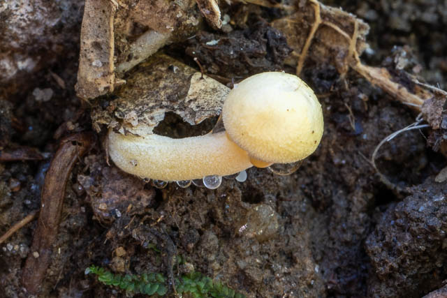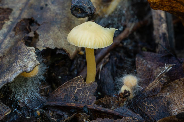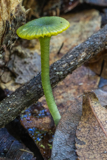 I found several clusters of this golden yellow species. It is not Gliophorus chromolimonea. It does appear to be similar to the New Zealand species Hygrocybe cerinolutea.