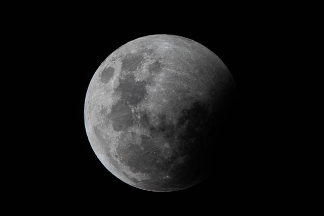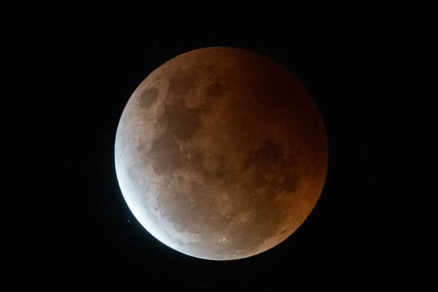 The period of total eclipse was from 9:11 pm to 9:25 pm. The photo below was taken at 9:15 pm (840 mm, 1/4 sec, f9, 6400 ISO).