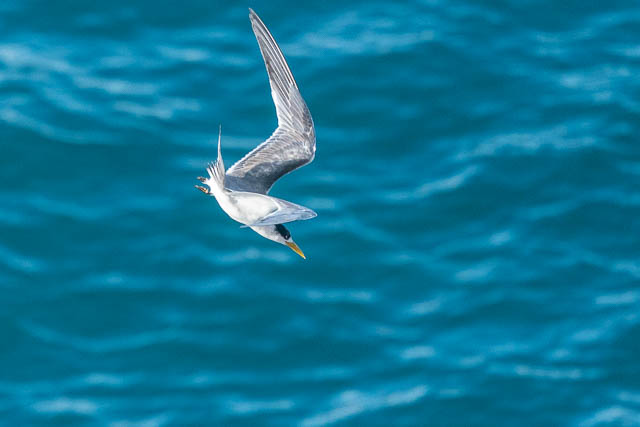 First at the sea cliffs, I was on the lookout for Peregrine Falcons. I didn’t see any at first, but I did see a distant raptor. From its hovering, I thought it was a Nankeen Kestrel. I walked along the coastal path to close to where I thought it was, but could not spot it. I did photograph a Crested Tern diving for a fish (unsuccessfully) –