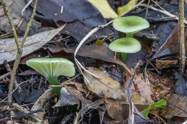 I looked carefully for fungi on the lower level. All I could find were these very tiny waxcaps.