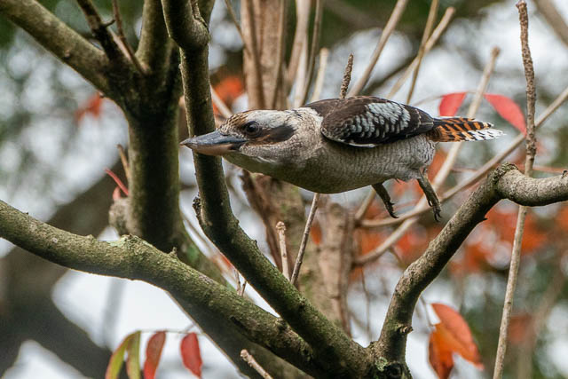But before I started, I heard a Laughing Kookaburra outside my unit. I looked out windows and saw it perched on a tree outside my bathroom. I went for my camera and saw it was still there.