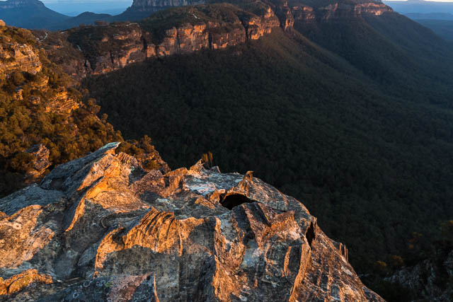 It was time to head back to Donkey Mountain in the Wolgan Valley. This time we only had a small party – John, Chuin Nee, their young son, Jasper, and myself. This would allow us to only need a small campsite – and we could camp high up on the south western end of the main peak.