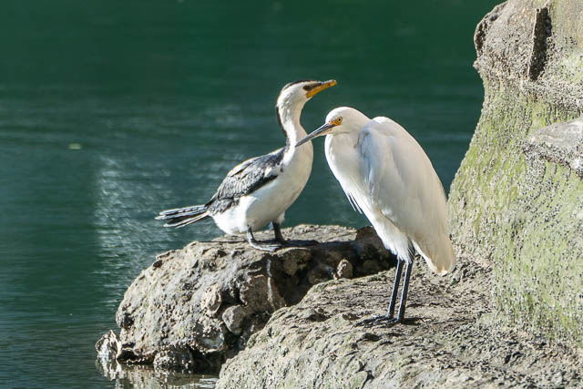 But I dint see the bird again, so I continued walking back upstream. Here is a Little Pied Cormorant and a Little Egret –