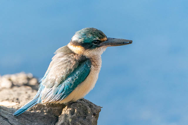 Crossing back over the river at Bayview Road Bridge, I spotted a Sacred Kingfisher on the foreshore of Gough Whitlam Park. I walked around the salt-marsh to get close.