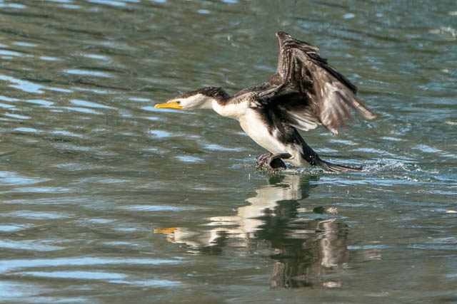 Here is a Little Pied Cormorant landing –