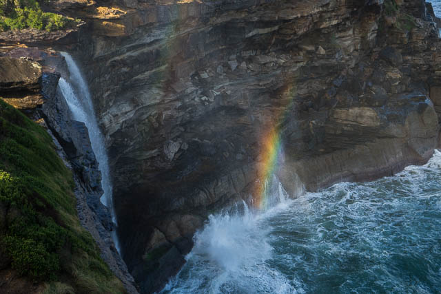 I spent a fair bit of time on the cliffs near Eagle Rock waiting for good light for photographs. Curracurrong Creek was nicely up and the twin waterfall into the seas was really spectacular.