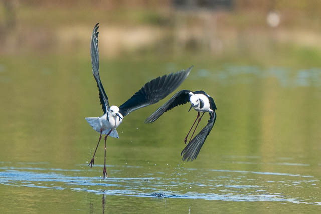 I moved back to the pond and watched the Pied Stilts. There was aa lot of squabbling going on. I think it is probably competition amongst the males – their breeding season is approaching.