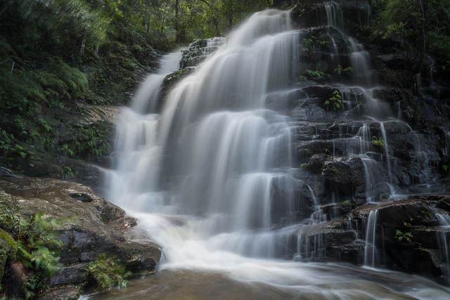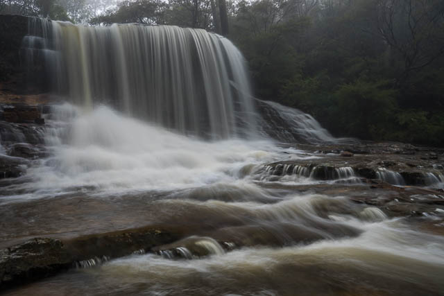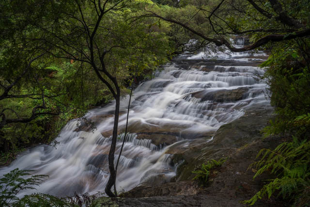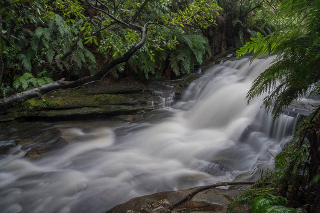 After talking to the canyoners, I made my way up to the Conservation Hut, where I met up again with Roger. His duties at the excursion where over, so we headed to nearby Leura Cascades for some more photography. Again -a very wet track, but more than made up with by beautiful and powerful cascades.