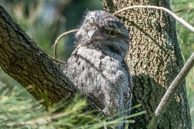 At the Boat Harbour, I soon spotted both of the Tawny Frogmouths. They were easy to see and even a bit restless. Here is the female –