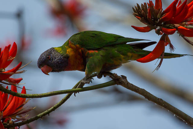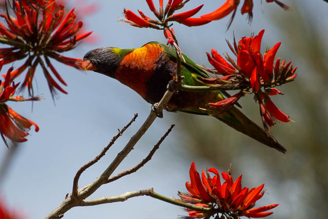 Further downstream, were a few Rainbow Lorikeets – having a good time finding nectar in the flame trees.