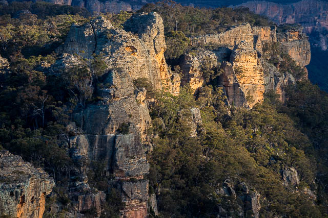 In the party, as well as myself, were John, Chuin Nee and Jasper, and also Digi Dave, Stacey and Rik. We arrived at Newnes about lunchtime and walked straight up Little Capertee Creek and then up a side creek to the Wolgan/Capertee Divide. From there it was only a 15 minute walk to our campsite. We set up our tents and flys and then we could spend the rest of the afternoon relaxing, enjoying the magnificent views and taking the odd photo.
