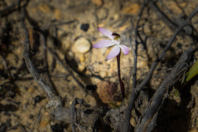 As for wildflowers, we were probably a couple of weeks too early for the best display. But what we saw was certainly quite good. Lots and lots of Caladenia orchids were out. Very tiny – but easy to spot against the blackened soil.