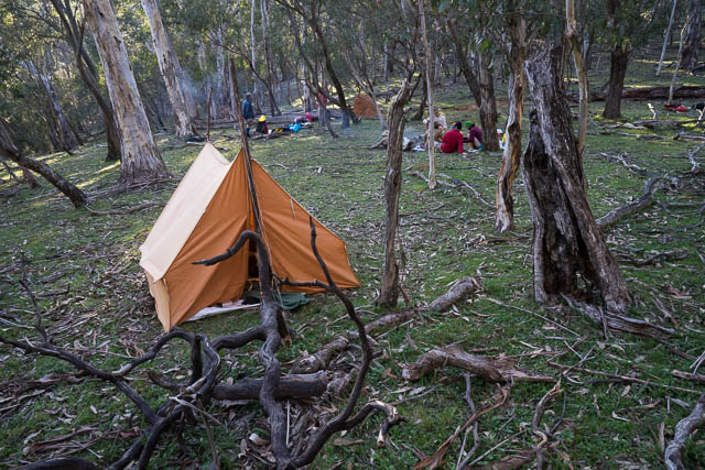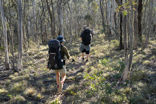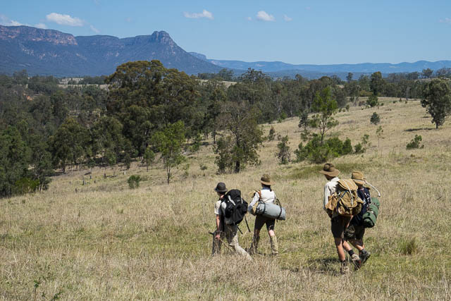 With modern maps and lightweight gear, together with vehicles meeting us every few days bringing in extra food, we did not have all the challenges that Myles and Bert had. However, to fit in with school holidays, we were doing the walk in less than half the time – with many long days. Also – Alex and Sierra Classen, another of the key organisers, walked all the way in period costume and used old bushwalking gear – including tweed jackets, swags and gunny sacks. For shelter they used an old japara tent.