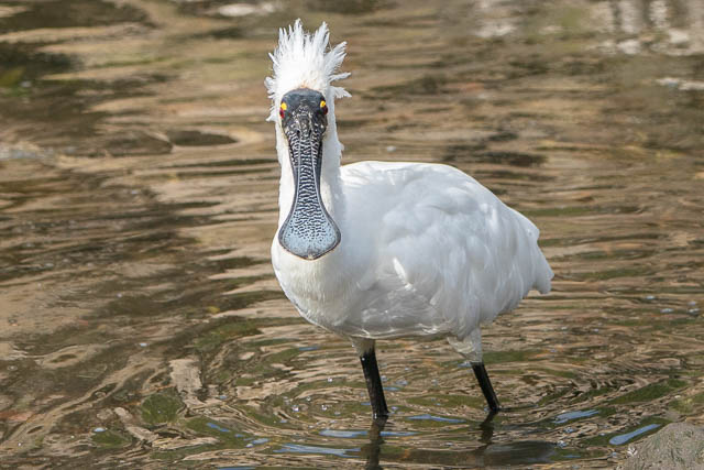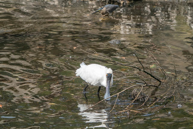 When the Spoonbills encountered the Heron, all the birds were startled.
