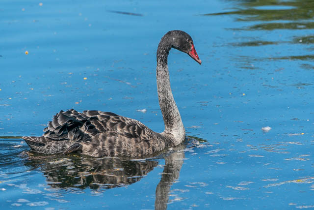 And here is one of the Black Swan cygnets. They now seem able to do short flights.