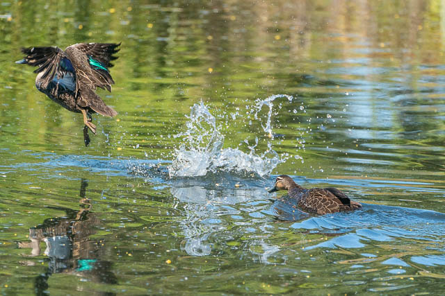 The eel did not seem to attempt to grab a chick. But when we spotted the Pacific Black Duck chicks we noticed that their number had gone down from four to two.