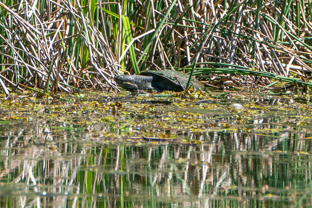 In the large pond we spotted several turtles. Here is one –