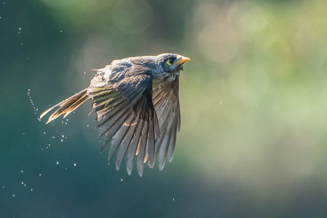 And I finished with some shots of some of the Noisy Miners having very quick baths in the pond.