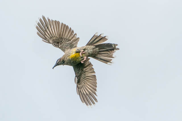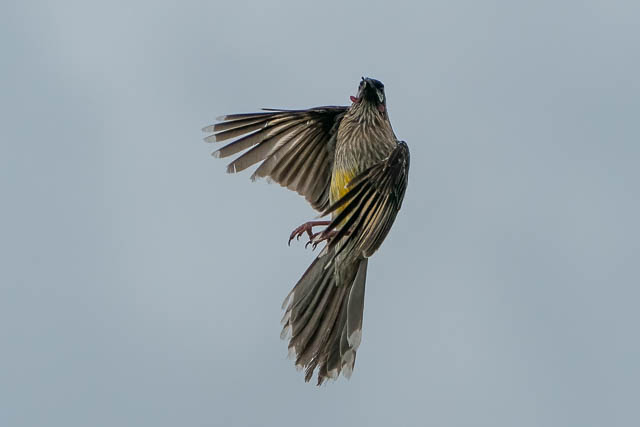 The Red Wattlebird was still hunting.