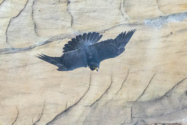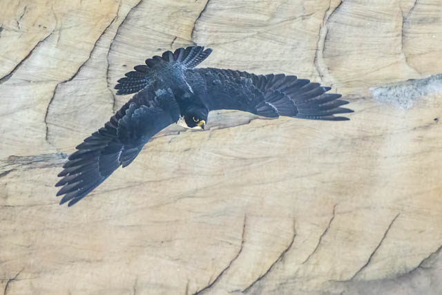 I thought that the Peregrine may fly after the Osprey encouraging it to leave the area. But I saw no evidence of this. However the Peregrine falcon had left the cave, and it later returned to the ledge it had been on earlier.