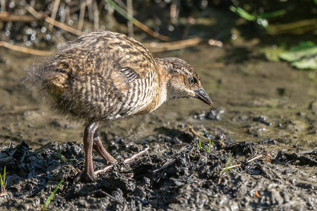 I soon spotted one Buff-banded Rail chick, and it was now much larger than the ones I had seen earlier. I observed it foraging in the one area for about 40 minutes. It wold often be out of sight – so it is possible that one of the chicks may have appeared and then another taken its place. I never saw two or more together. Here are some more photos –