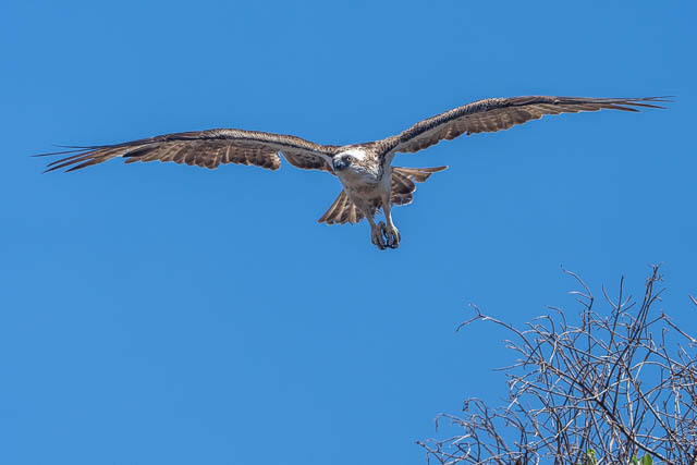 Then the female Osprey decided to fly. It went for a short fight, around a loop, then returned to the top of the nest.