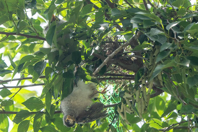 As I was leaving the Reserve, I noticed some white bird poo on the path, and looked up in the tree above. I spotted a nest with two dead Noisy Miners hanging down. Strange.