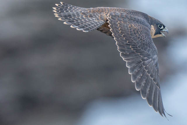 And then I had to wait about another hour for a first glimpse of the juvenile Peregrine Falcon. I was having lunch at Boora Point and I saw it flash past the cliffs. I was able to get a few photos of it flying.