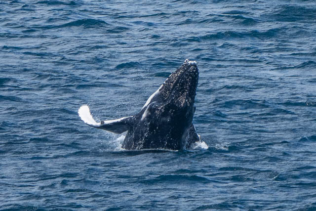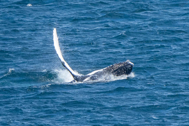 I ddi not see the juvenile Falcon return. While watching for it I did see a Humpback Whale breeching. I pointed my camera towards that direction and witnessed about ten minutes of amazing whale action. Lots of breeching.