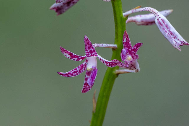 As we stared walking up the hill, we spotted a large number of Hyacinth Orchids. They seemed to be two different species. The ones with green stems are likely to be Dipodium variegatum.