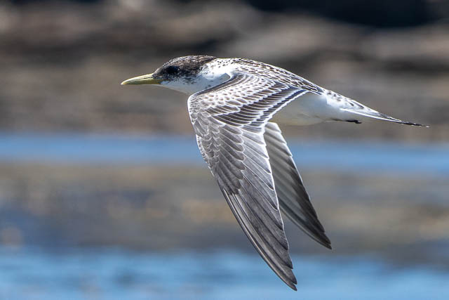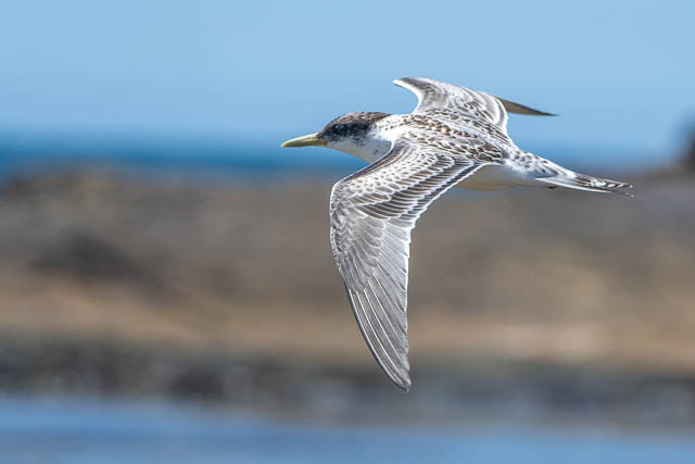 I then went back down to the lower level to look for migratory birds while the tide was low. This small jet flew past. It does not seem to have an identifying marks.